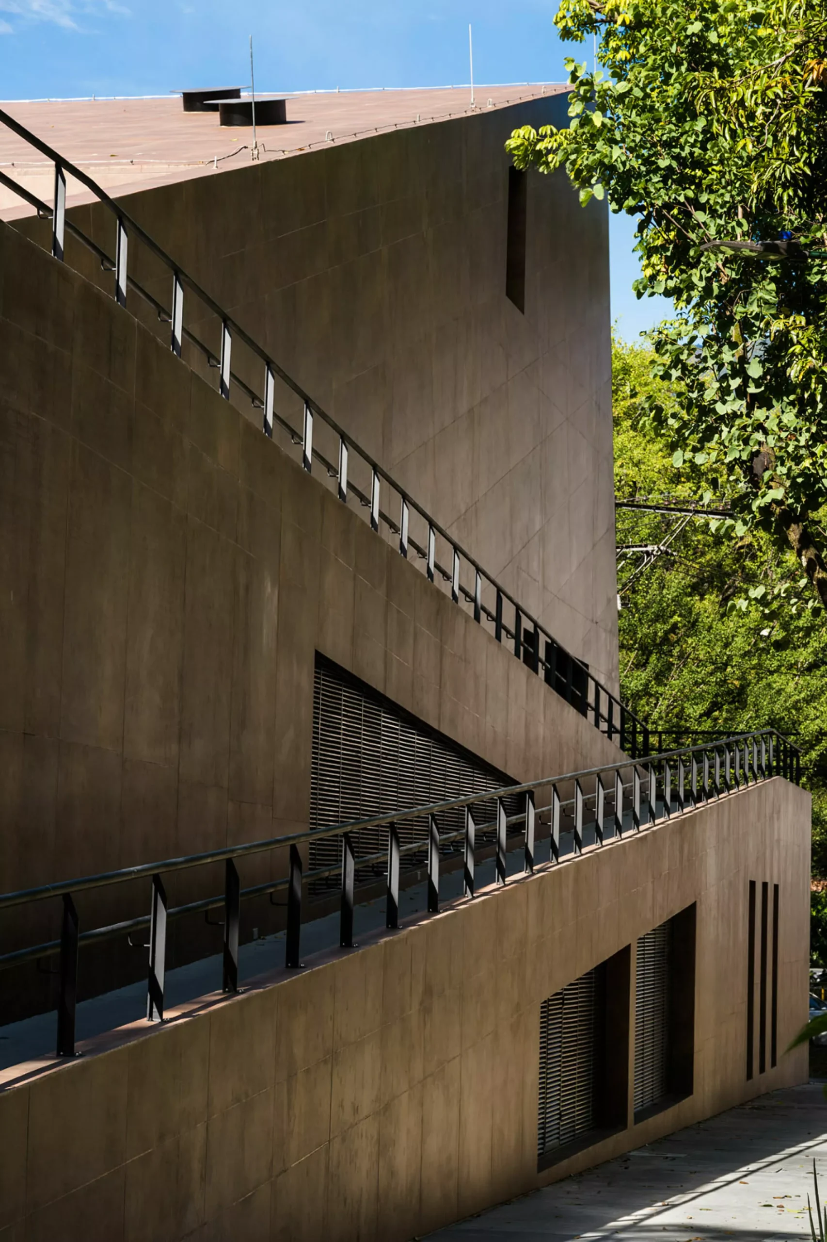 Objekt má jednoduchý hranolový tvar, no jeho jemné naklonenie reaguje na mierku okolia. Stavba tak nepôsobí masívne a zachováva charakter parku. Zeleň zostáva dominantou a budova funguje ako doplňujúci prvok verejného priestoru.